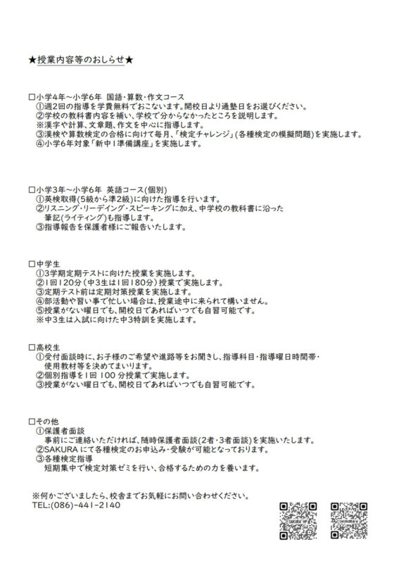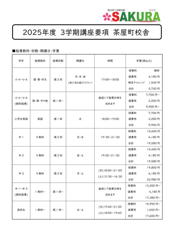 | 2025年12月15日 | 3学期講座の要項をアップしました! |