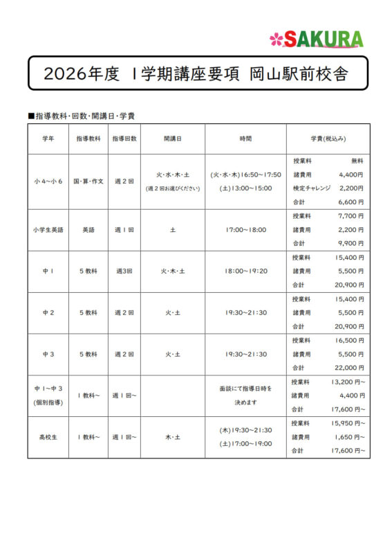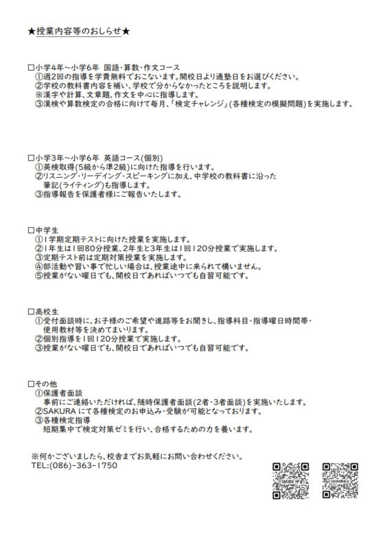 | 2026年2月7日 | 春期講習のご案内をアップしました! |