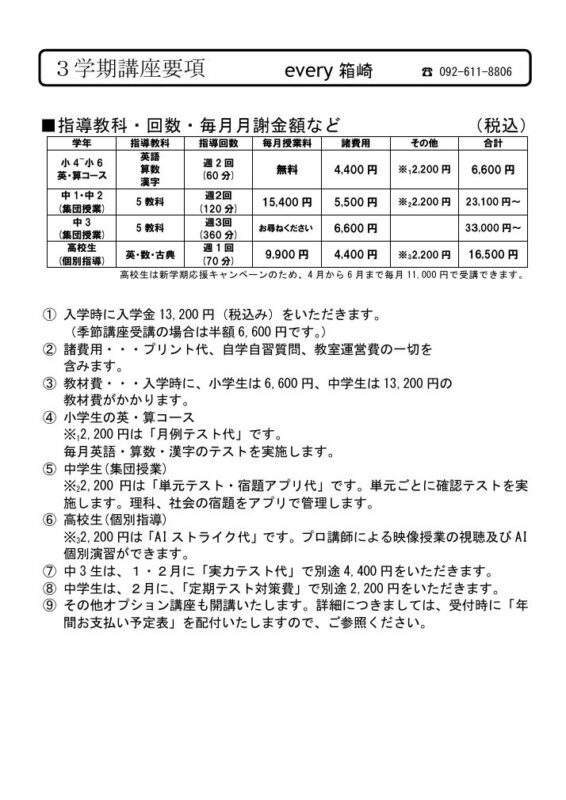 | 2025年2月19日 | 春期講習の要項をアップしました |