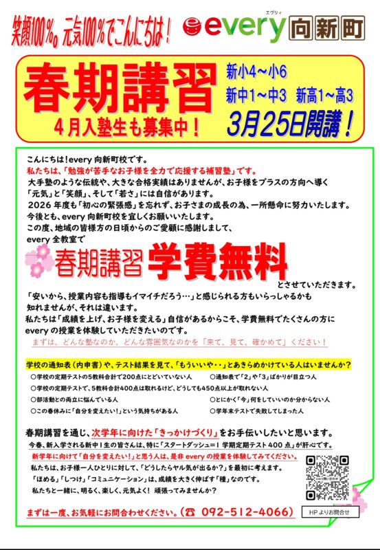 every向新町は懇切、丁寧、真心指導!地域密着型の学習塾です!