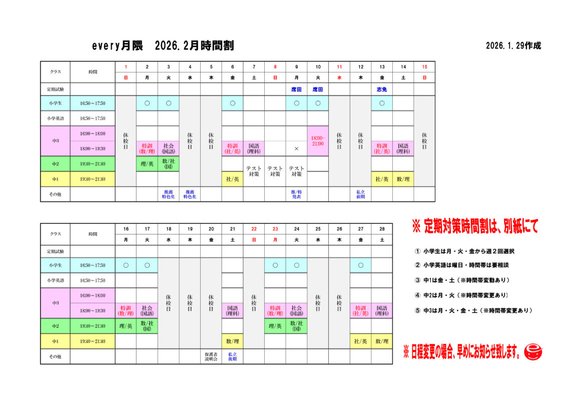 さあ~いよいよ最終学期に入りましたよ!中3が入試直前....中1・2が学年末テストへ気合入れて頑張っていきましょう。中3は最後まで諦めずにやることが一番大事です。一緒に踏ん張っていきましょうね。小学生も学年最後の学期ですので、集中して頑張っていきましょう!
