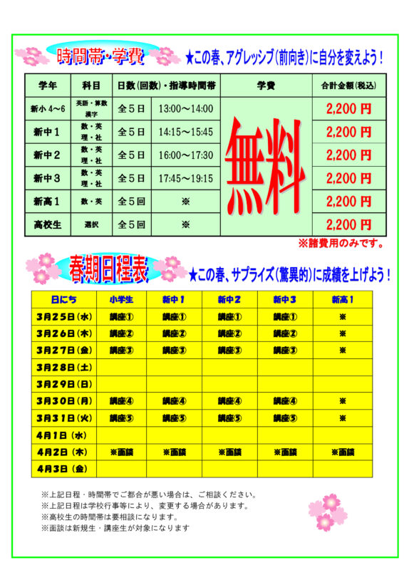 | 2023年3月27日 | 4月スケジュールをUPしました。 |