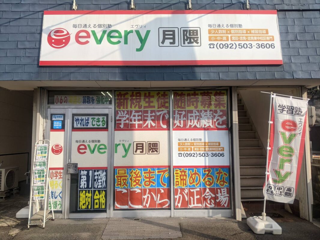 小学英語→国語・算数・理科・社会は勿論しっかり勉強しないといけませんが、これからの時代は「英語が必須(最重要)」です。小学卒業までに英検5級を取得すれば御の字...という時代は終わっています。every月隈は小学卒業までに英検3級取得を本気で目指します!!この本気プロジェクトに参加しませんか?まずはお問い合わせください。