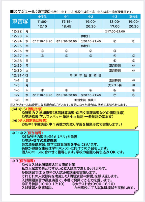 | 2023年4月28日 | 東吉塚個別1対1コース開講のお知らせ |