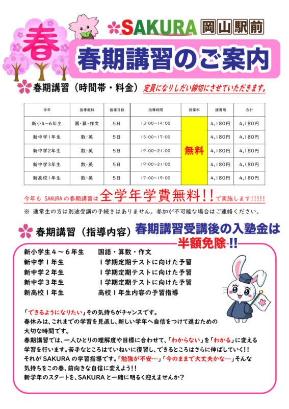 SAKURA岡山駅前からお知らせ